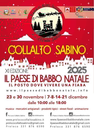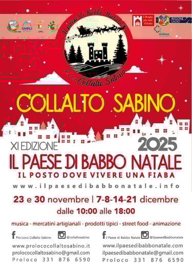 Collalto Sabino, uno dei Borghi più belli d’Italia, si prepara a vivere, per l'undicesimo anno, l’atmosfera incantata del Natale con un evento straordinario: “Il Paese di Babbo Natale”.